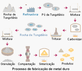Vamos ver o processo de fabricação de metal duro. Primeiro, misture carboneto de tungstênio